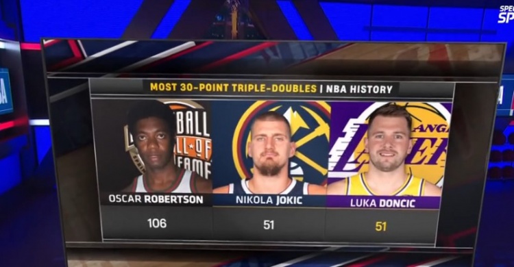 华体会一键直达-就在今天?东契奇51次30+三双已追平约基奇并列第2 大O106次领跑